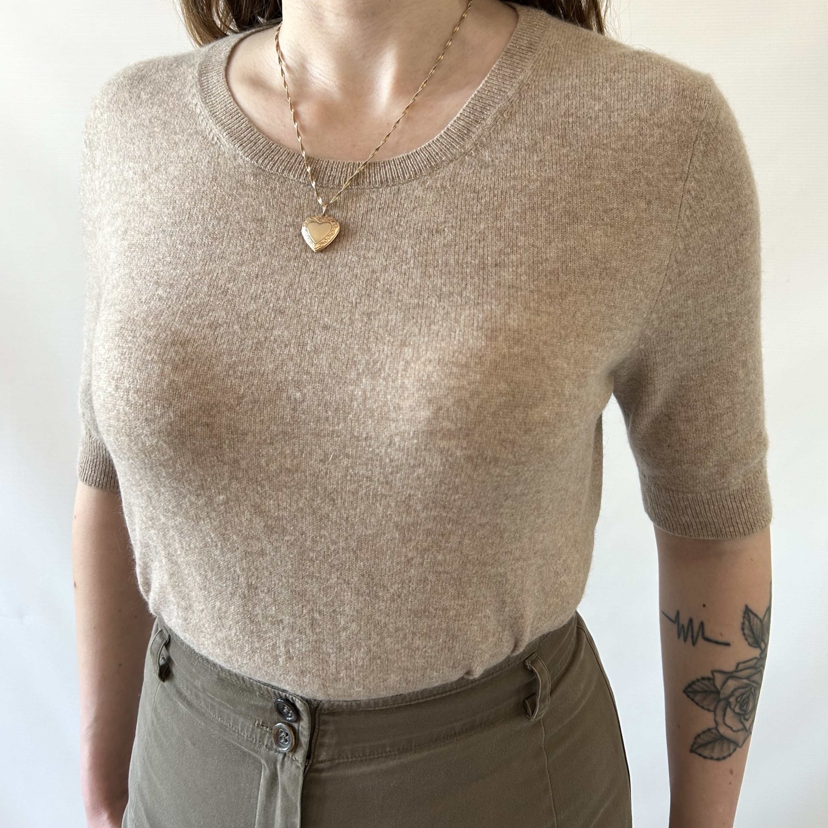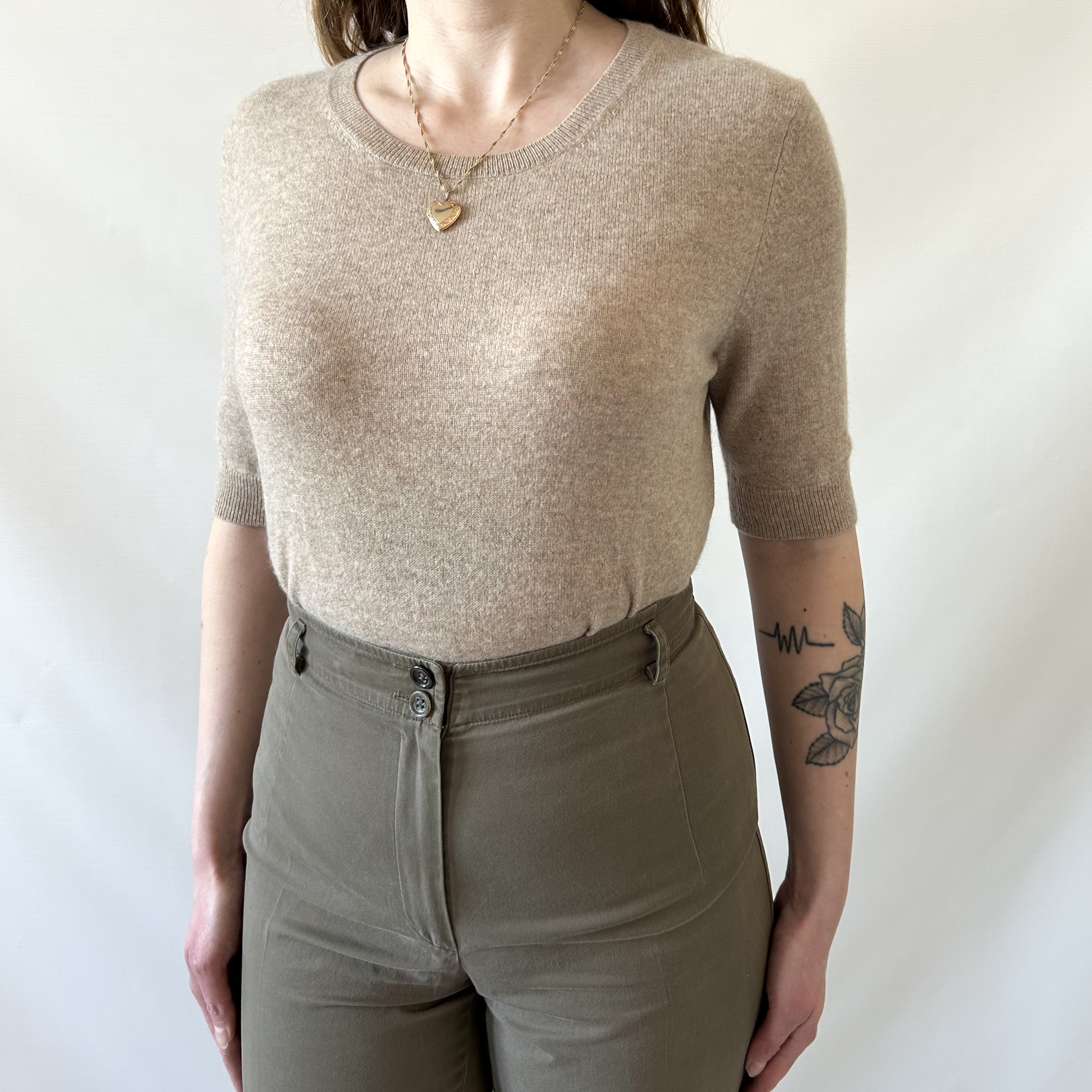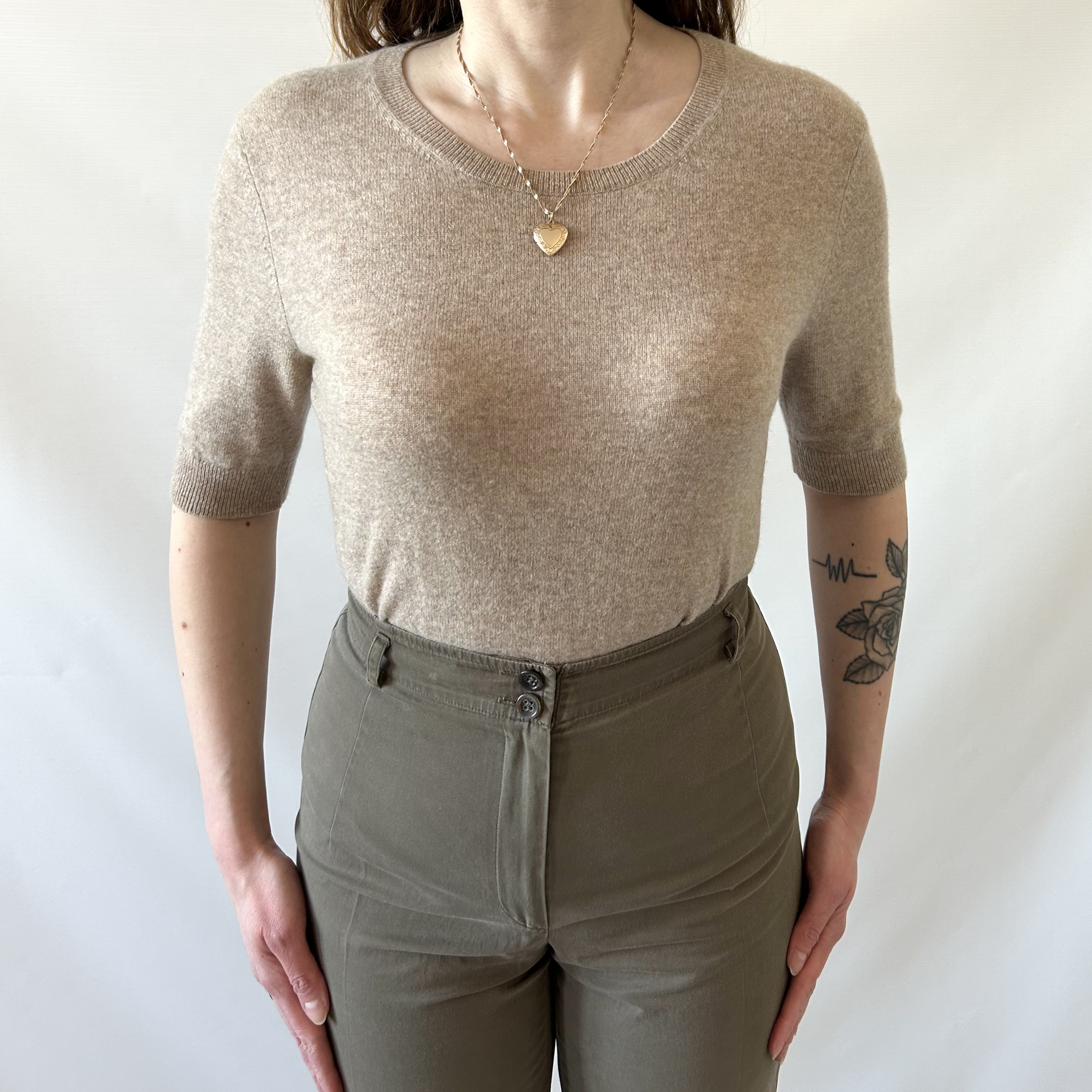 100% kaszmir karmelowy sweter z krótkim rękawem