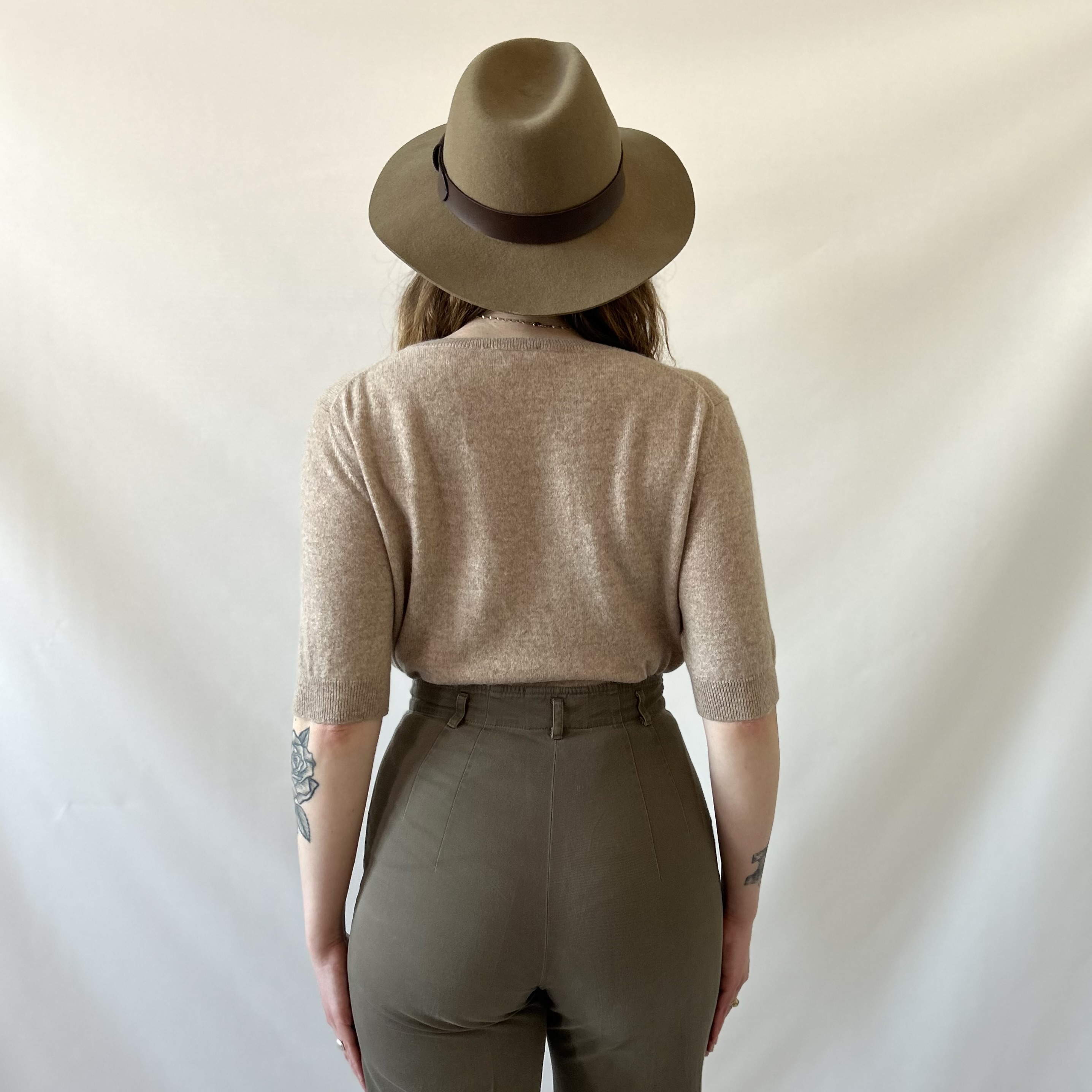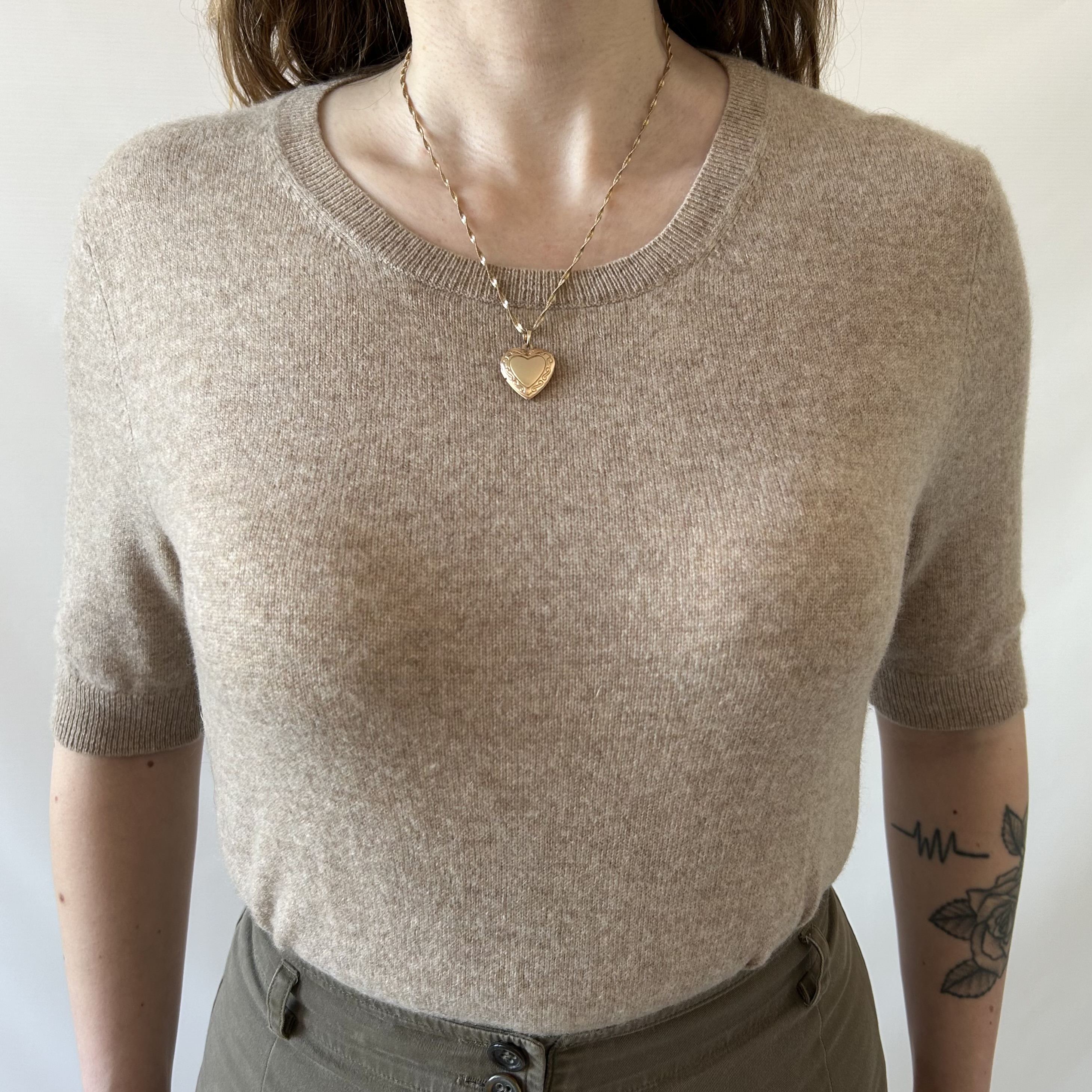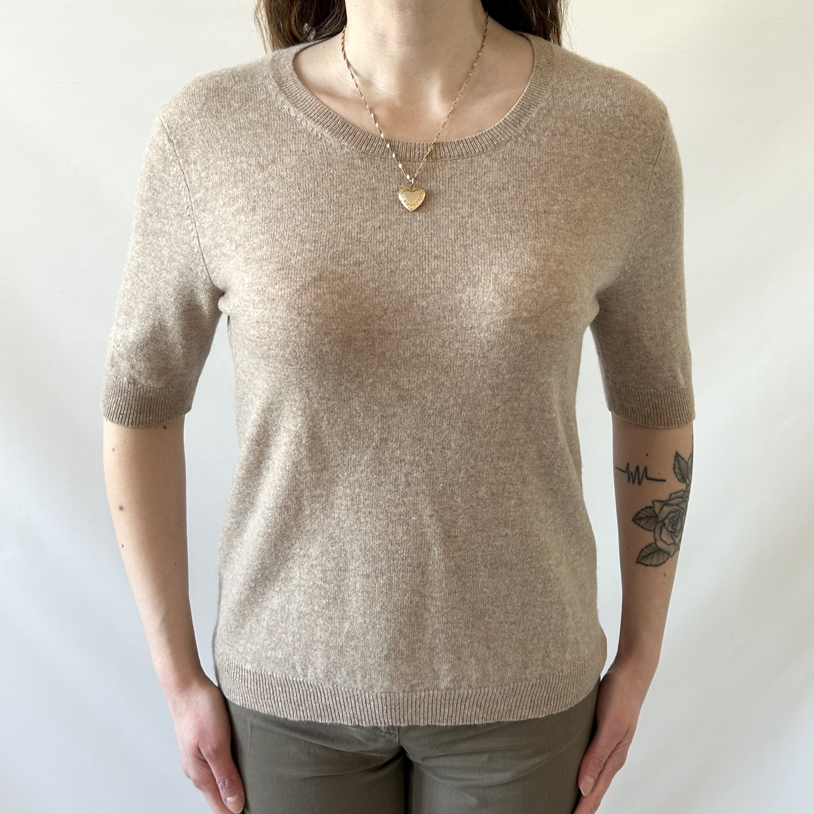 100% kaszmir karmelowy sweter z krótkim rękawem
