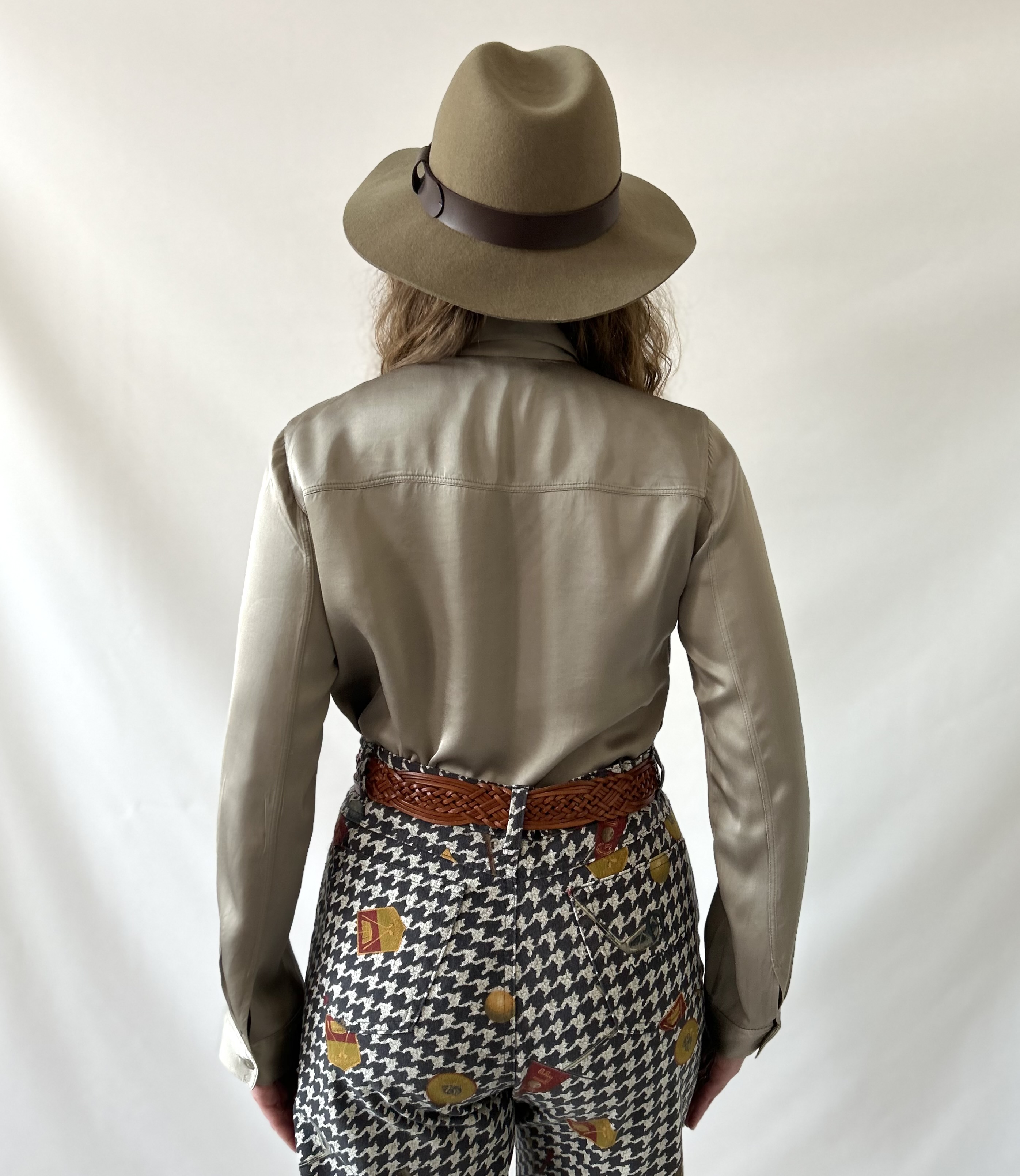 Massimo Dutti satynowa khaki koszula wiskoza