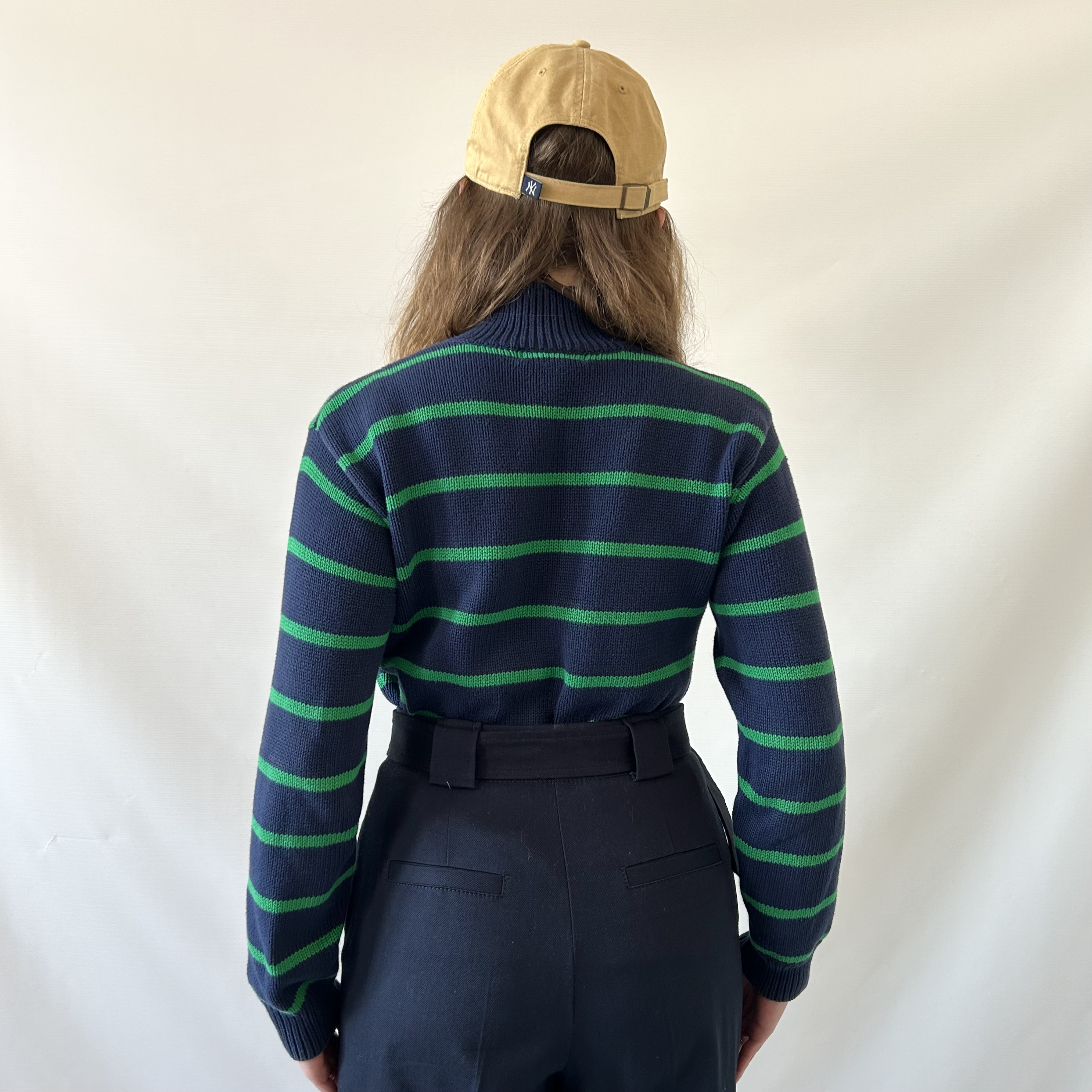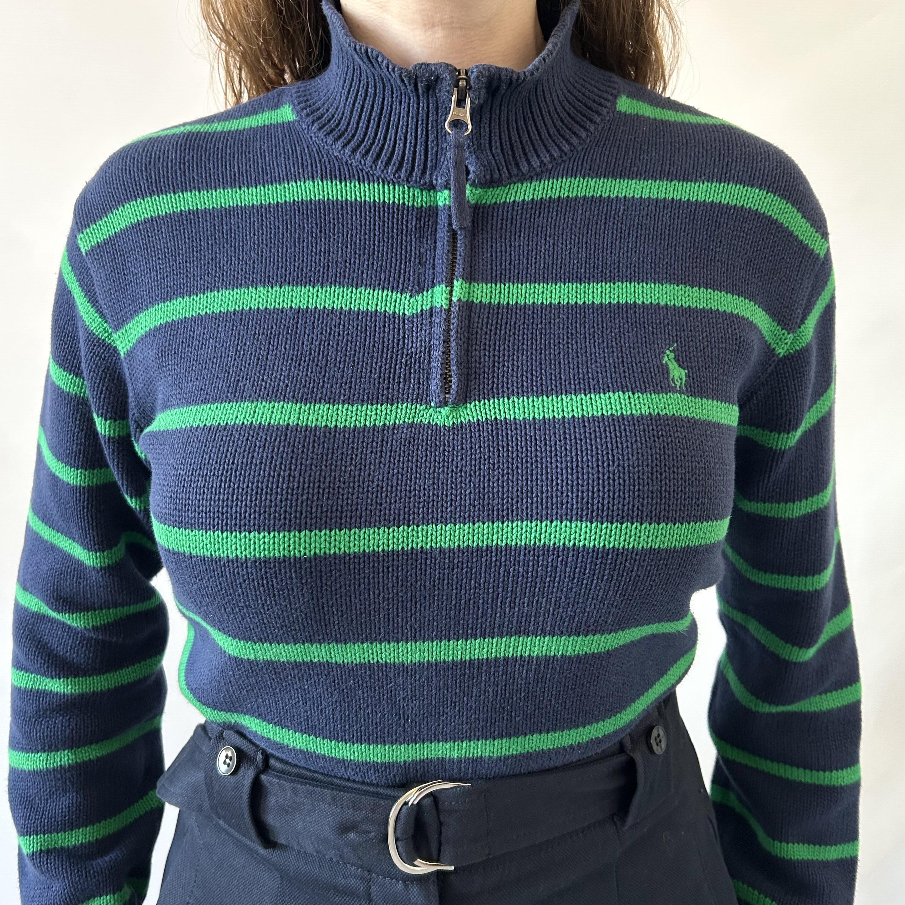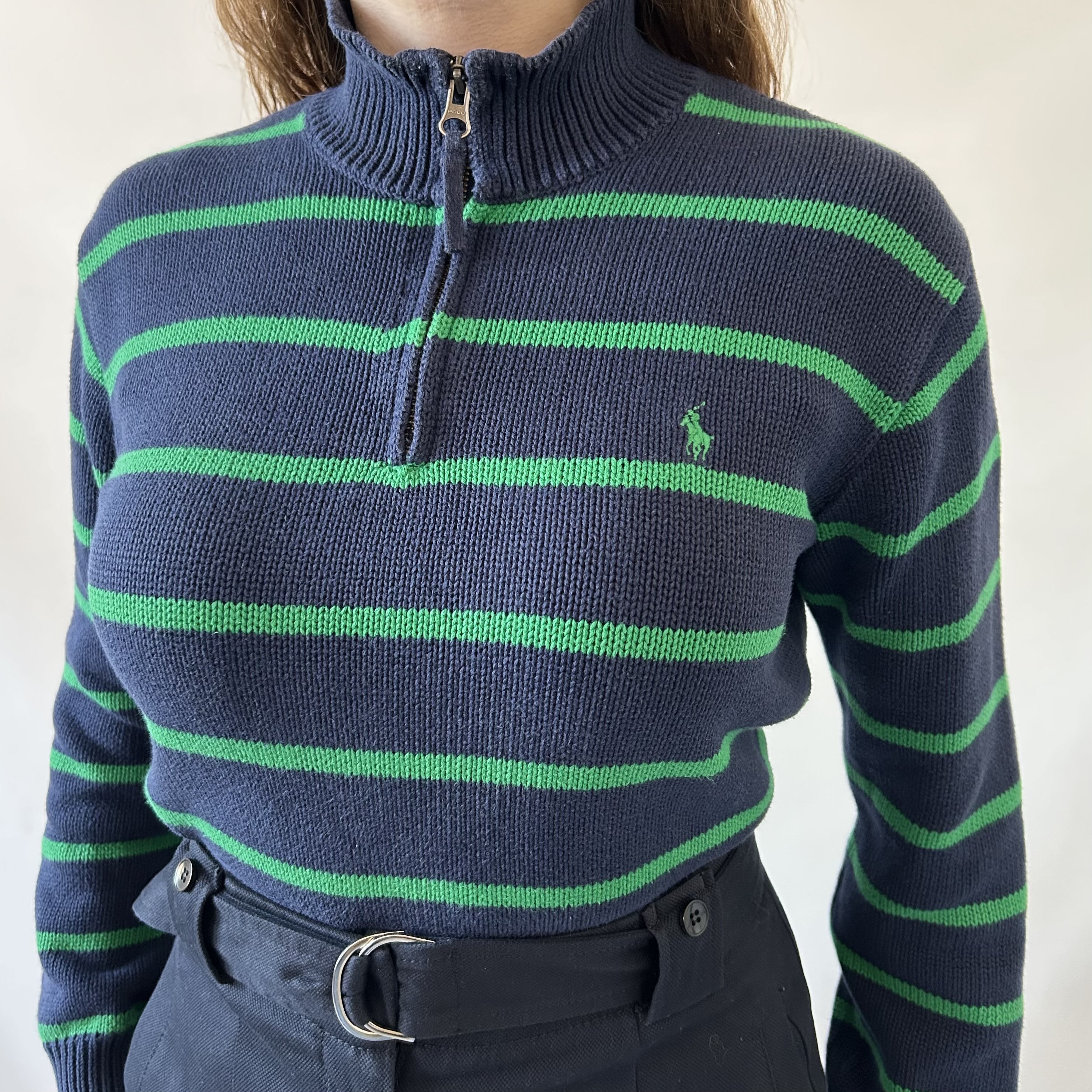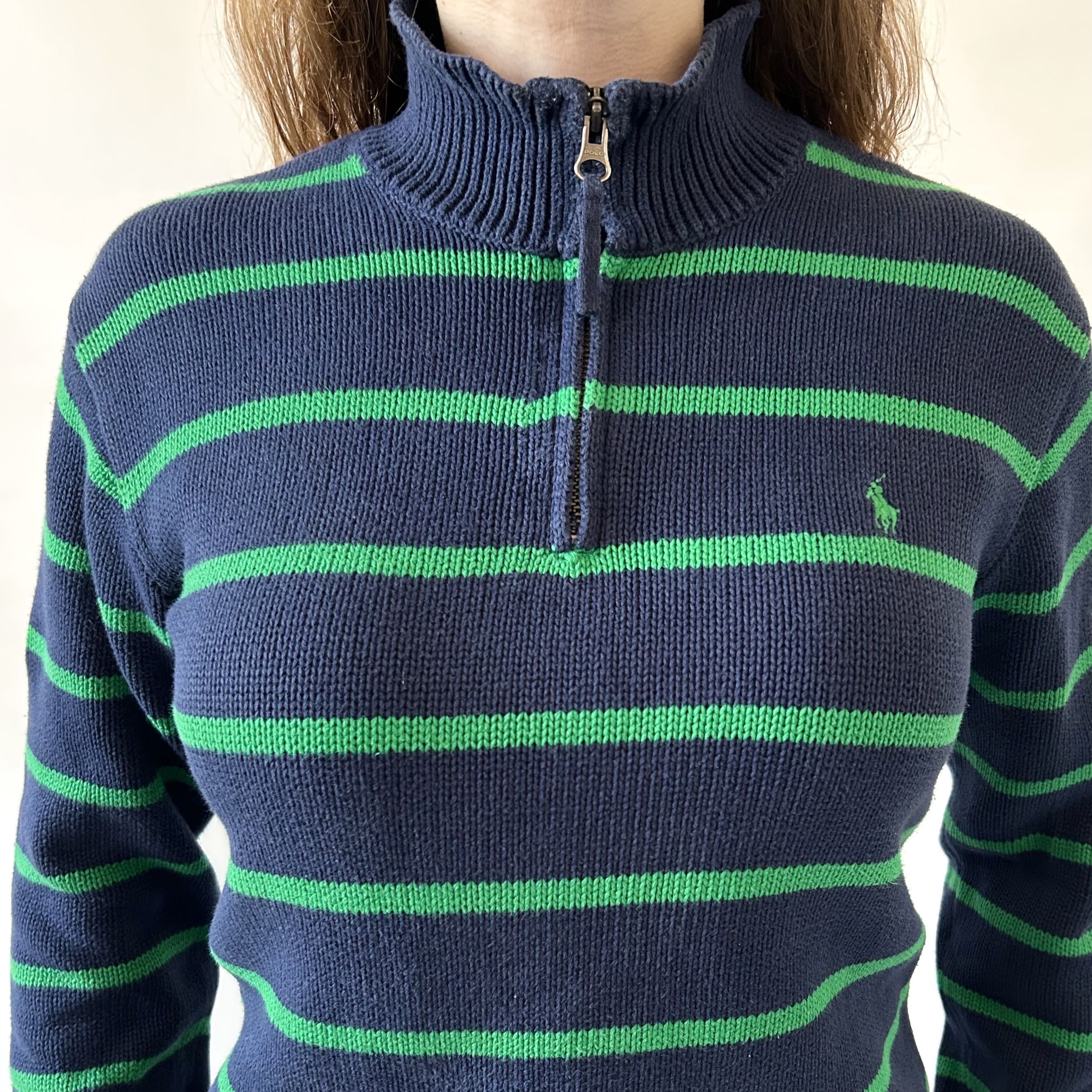 Granatowy sweter w zielone paski marki Ralph Lauren 100% bawełna Rozmiar L (proszę sprawdzić wymiary)