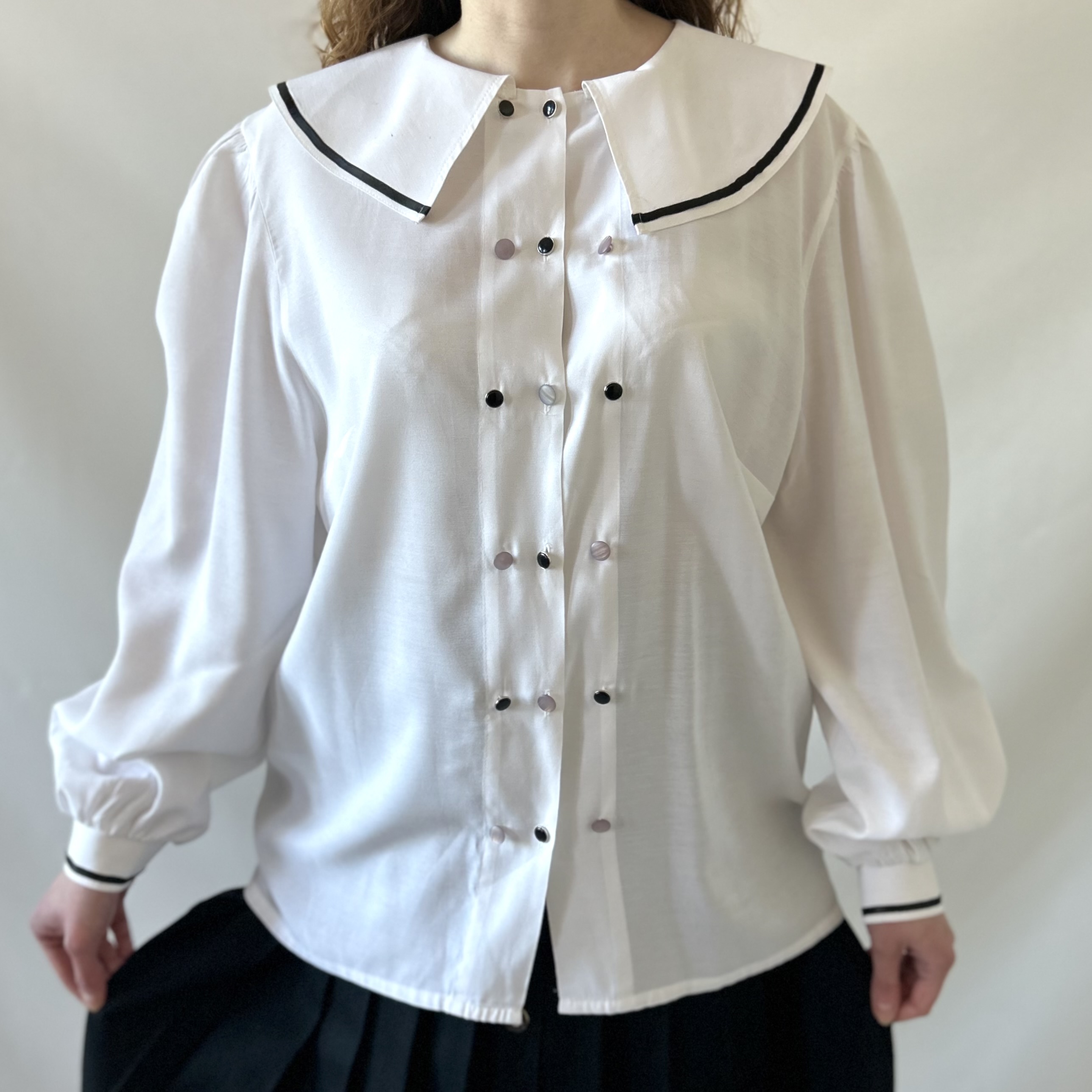 Biała vintage koszula z efektownym retro kołnierzem