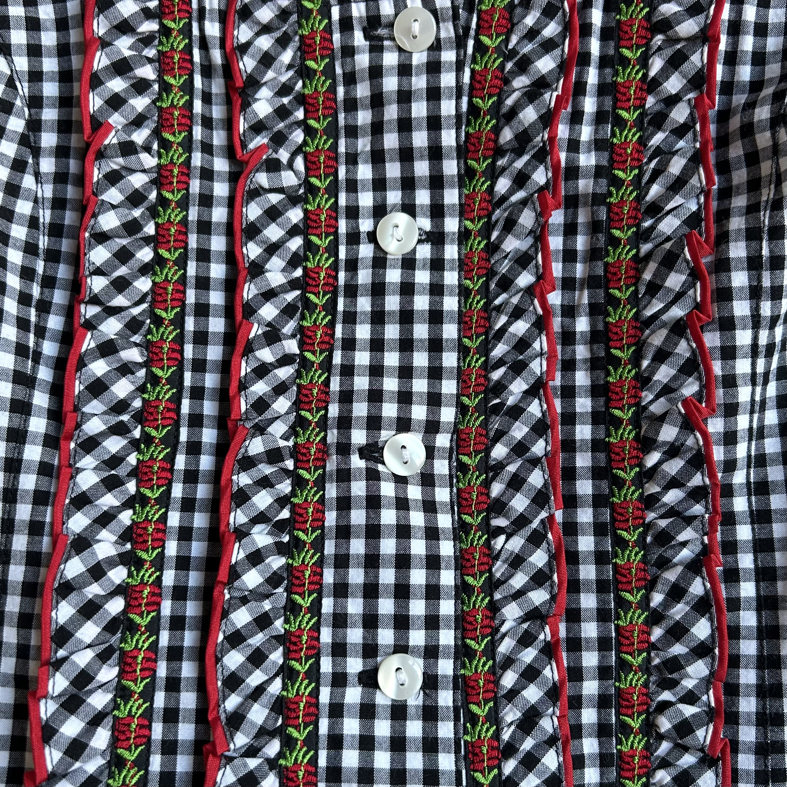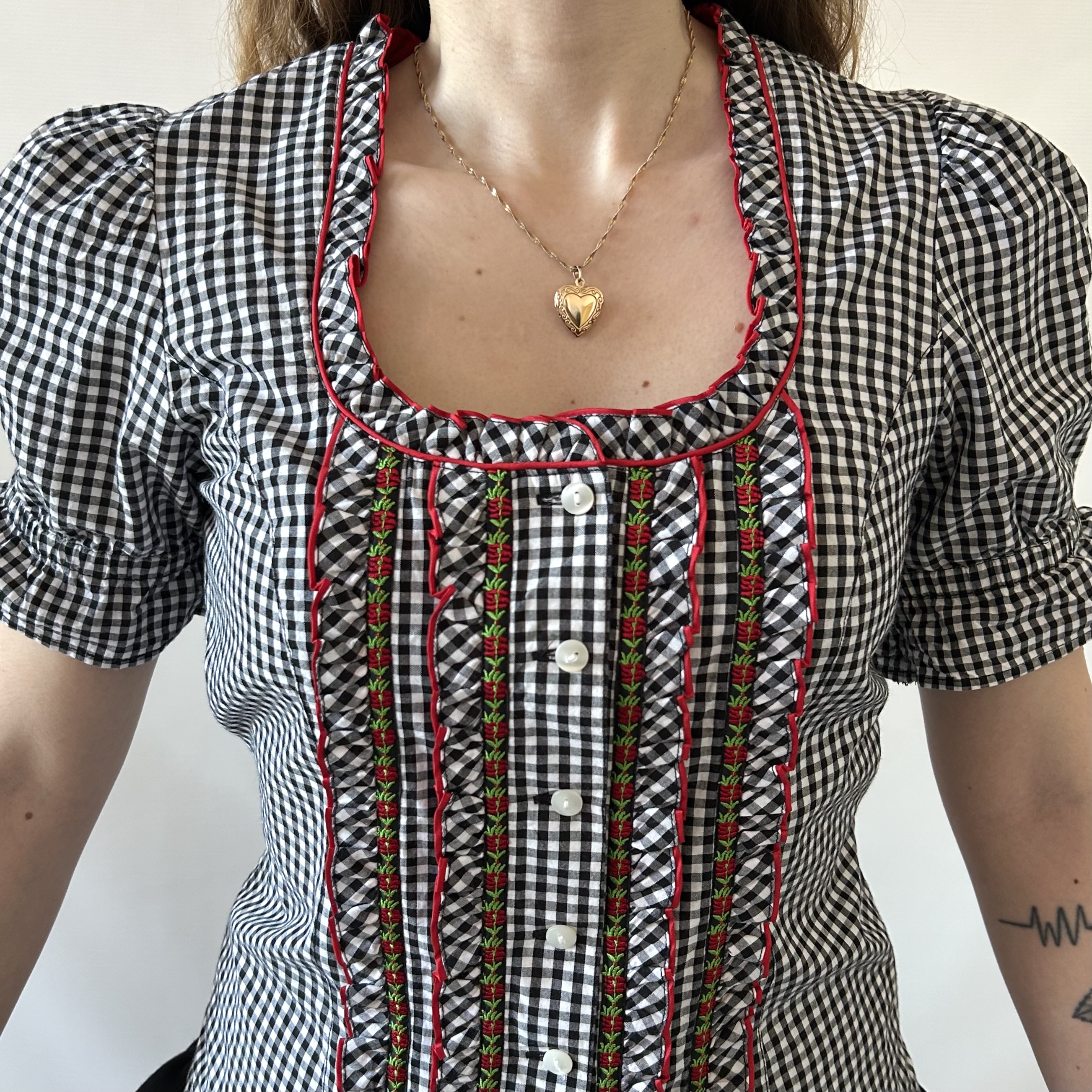 Koszula w biało-czarną kratkę w gorsetowym stylu cottagecore