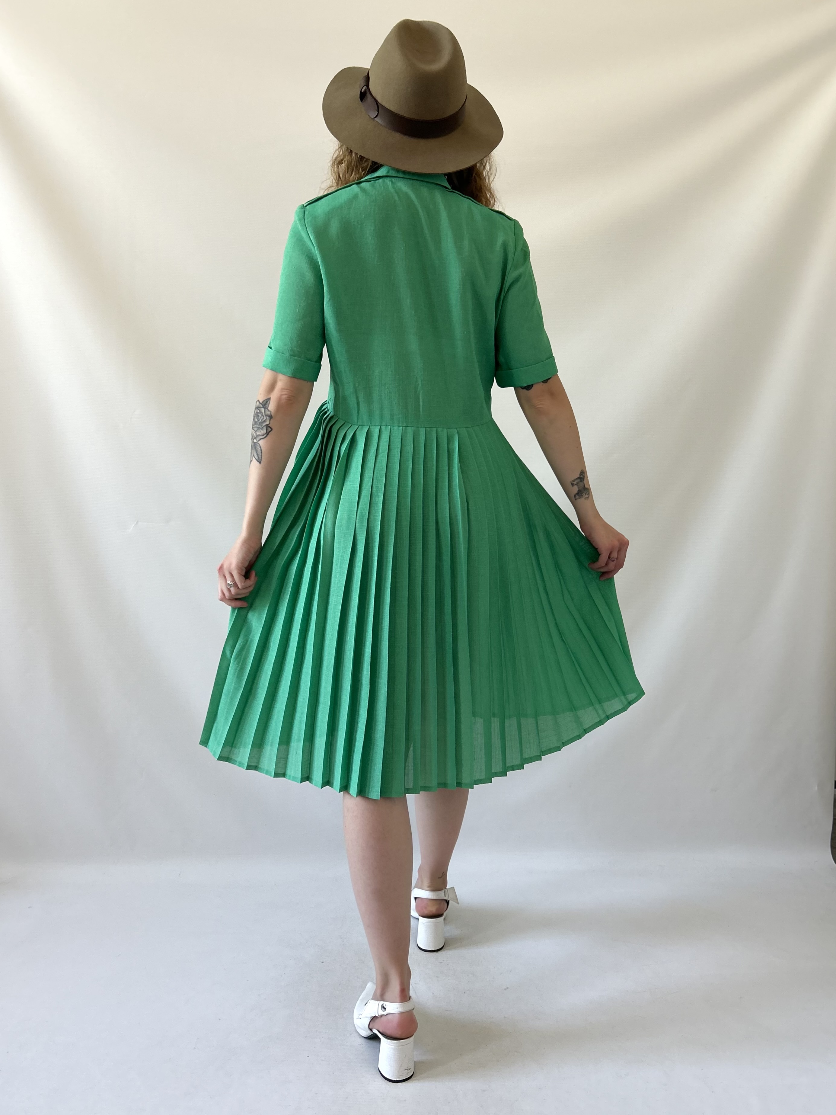 zielona plisowana vintage sukienka